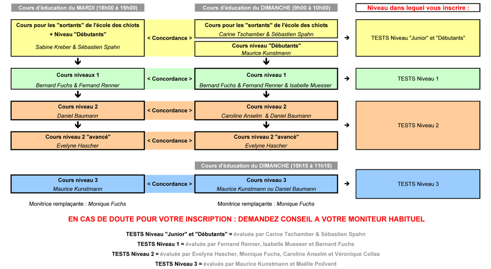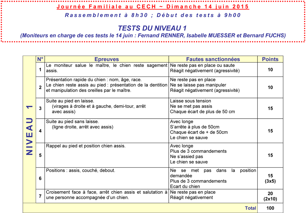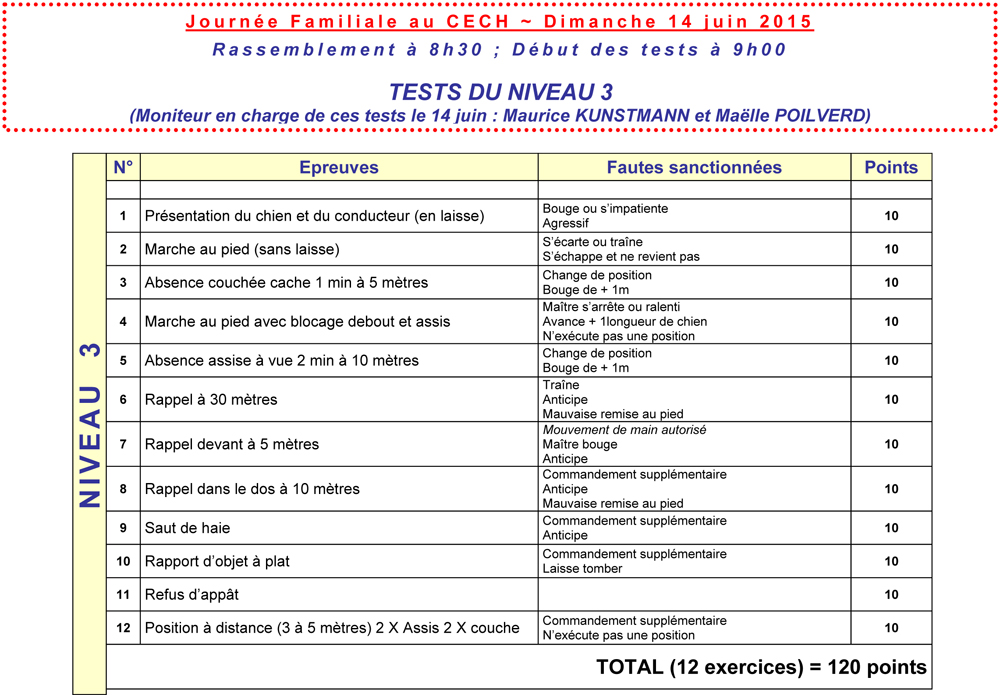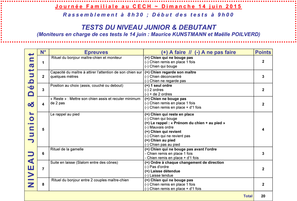 Une série d’épreuves, selon votre niveau, permettra d’évaluer votre chien. Venez vous inscrire au bureau du club.