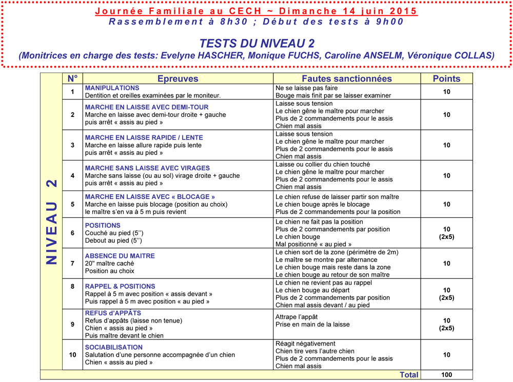 [su_service title= »2) LISTE DES TESTS PAR NIVEAU : » icon= »icon: paw » size= »44″][/su_service]