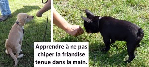 Cet apprentissage du « tu laisses » doit se faire sans brûler les étapes, en diversifiant et compliquant les entrainements pour aider votre chiot à généraliser ce « blocage à suite positive » qu’est le « tu laisses ».